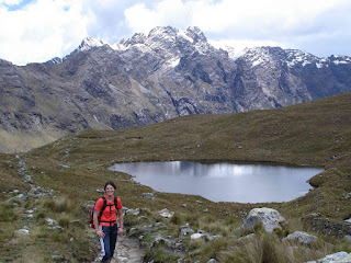Am Samstag ging es hoch hinaus. Wir starteten bei ca. 3800m und ueberquerten einen 4750m hohen Pass. Das Wetter war an diesem Tag sehr schoen und wir hatten deshalb einen wunderschoenen Ausblick. Beim Abstieg knickte Adrian mit einem Fuss um. Deshalb ging das letzte Stueck ziemlich langsam voran.